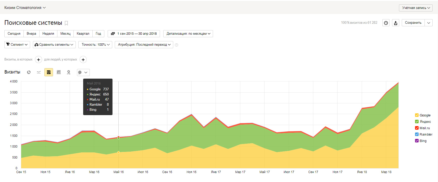 В первую очередь мы собрали новое семантическое ядро, проработанное на основе экспертного контента, в основном ориентированное на ключевых запросах имплантации, протезирования и ортодонтии.